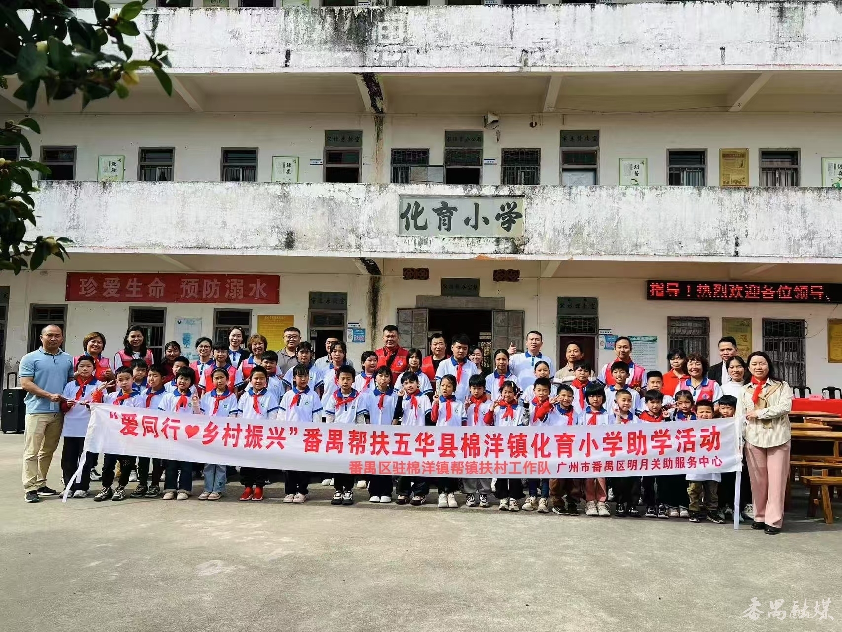 3 月 1 日,番禺区派驻五华县棉洋镇帮镇扶村职责队联袂番禺区明月关助处事中心和爱心企业在五华县棉洋镇化育小学举行“爱同业”乡村振兴助学举止捐赠庆典,以本色步履支撑乡村老师处事发展。