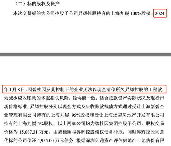 说的凡俗点,这亦然在房地产行业暴雷后,不少家居企业被动经受的“抵债房”。历史音问露出,2024年1月8日,因碧桂园过火适度下的企业无法反璧所欠昇辉控股的工程款,经协商一致,昇辉控股区分以现款形态及应收账款抵债形态通过受让上海新碧企业惩办有限公司捏有的上海九嶷95%股权和受让上海眩碧房地产开发有限公司捏有的上海九嶷5%股权,以上两家公司均为碧桂园集团控股子公司。